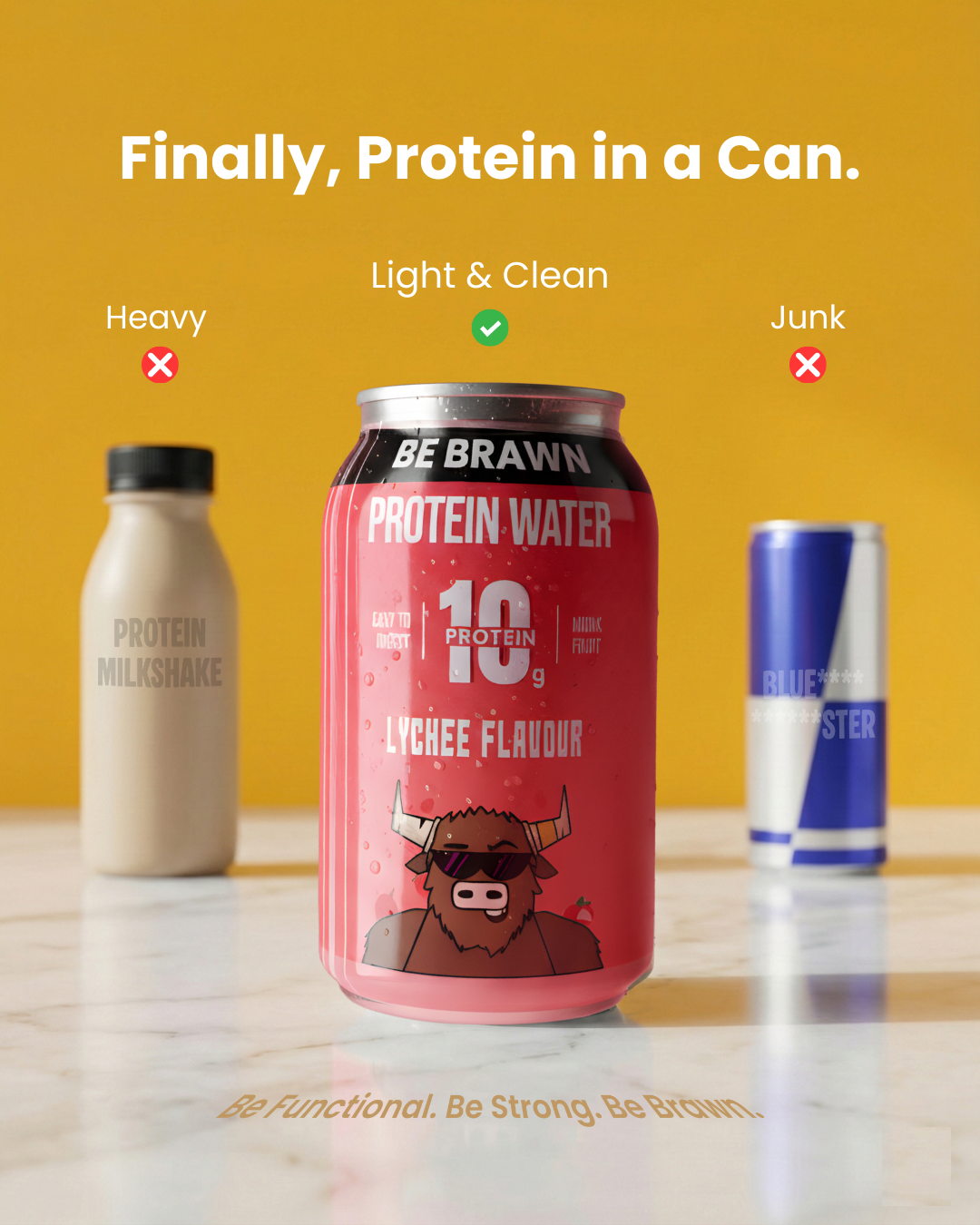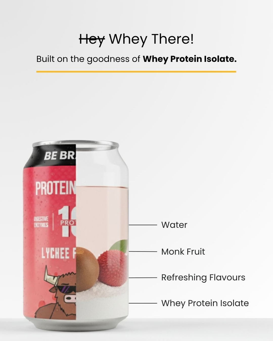 Clean protein water. 10 grams of whey protein isolate. Naturally sweetened with monk fruit. Perfect during work, gym, or on the go!